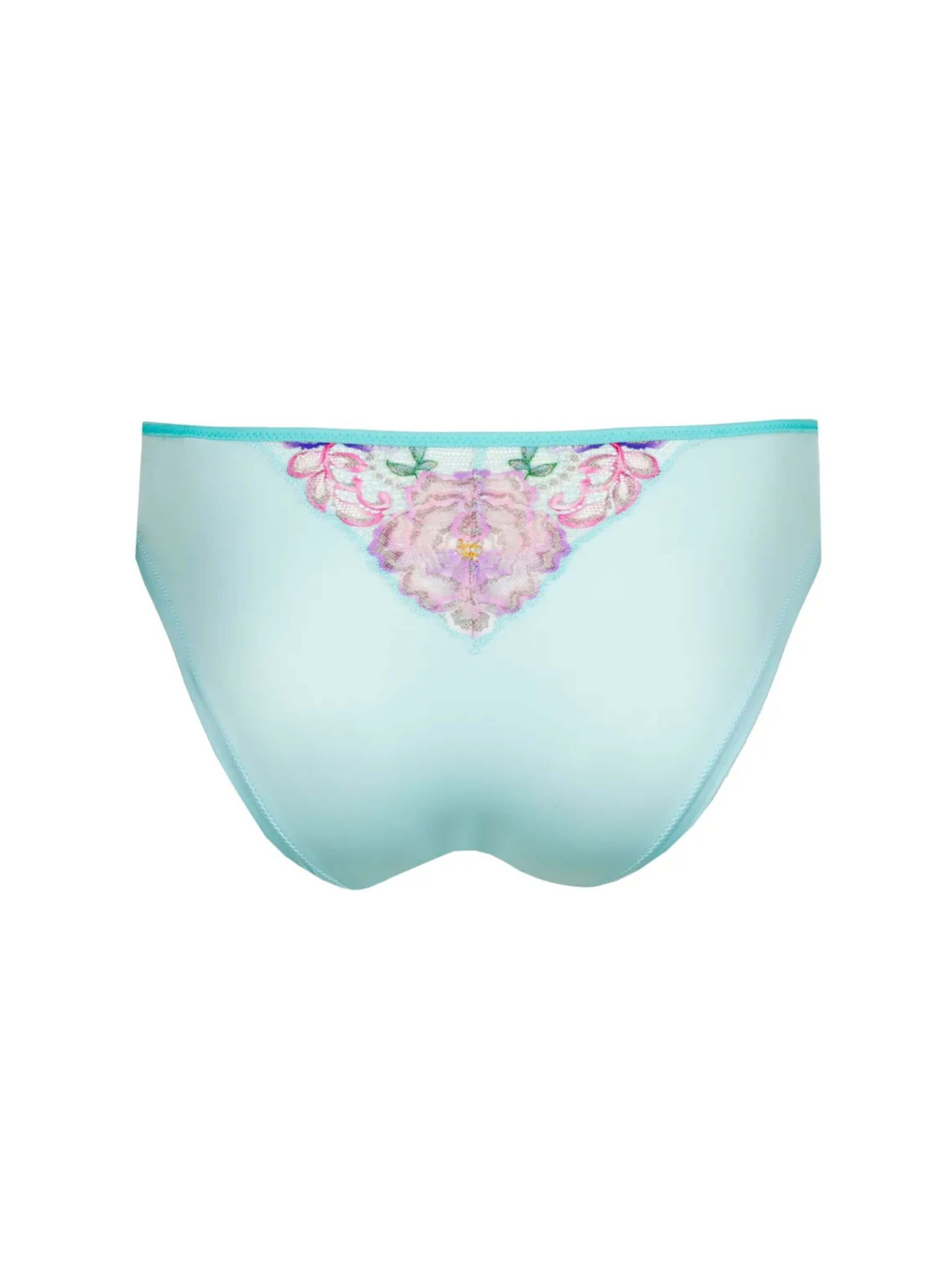 Marie Jo LISBETH-sarjan tai-mallinen alushousu. Alushousun etuosa on upeaa pitsiä ja takaosa erityisen ohutta ja pehmeää mikrokuitua. Alushousussa vyötäröllä ohut kuminauha, jalansuussa joustava ja litteä tyllireuna, joka ei jätä painaumaa pakaraan. Alushousun korkeus koossa 40 haarapalasta vyötärölle noin 25cm.