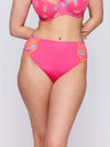 Prima Donna CALA LUNA -sarjan korkeavyötäröinen alushousu. Alushousussa miellyttävän pehmeä ja ohut materiaali. Kauniit pitsiyksityiskohdat alushousun sivuilla. Alushousun vyötäröllä ohut kuminauha ja takana jalansuussa joustava ja litteä pitsi, joka ei jätä painaumaa pakaraan, mutta pitää alushousun paikoillaan. Alushousun korkeus koossa 42 haarapalasta vyötärölle noin 29cm.